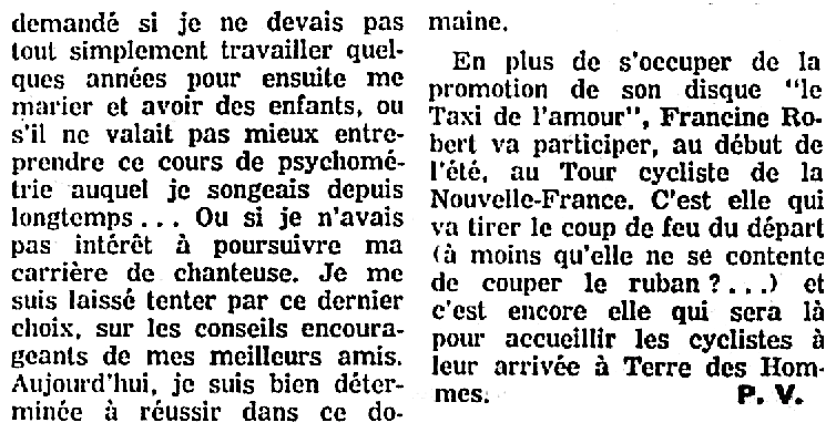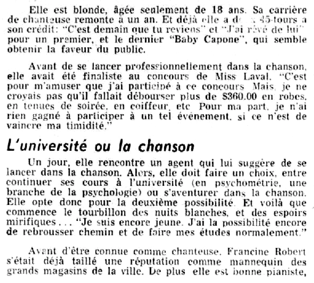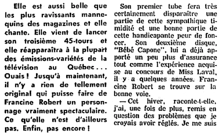 L'une oeuvre dans la chanson, l'autre porte le titre de Miss Cinéma '70. Les deux participent à de nombreux événements artistiques. Cela a porté à confusion à quelques reprises. Je vous présente un exemple tiré de la revue "Ici Radio-Canada" où l'on constate une erreur de photo dans l'annonce d'une émission musicale.