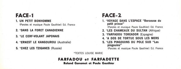Farfadou et Farfadette autour du monde avec Roland Ganamet et Louise Gauthier.