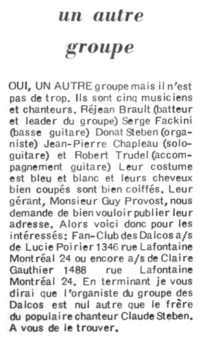 Source: La merveilleuse époque des groupes québécois des années 60, Léo Roy, Les Éditions Rétro Laser - 2003