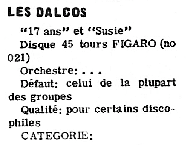 Les Dalcos ont enregistré en tout six chansons: les deux dernières ne seront jamais éditées. Ils ont tout de même