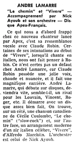 Dictionnaire de vos vedettes 1960-61