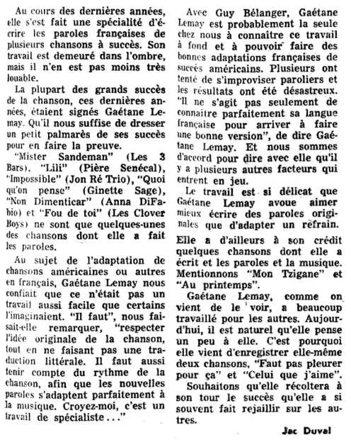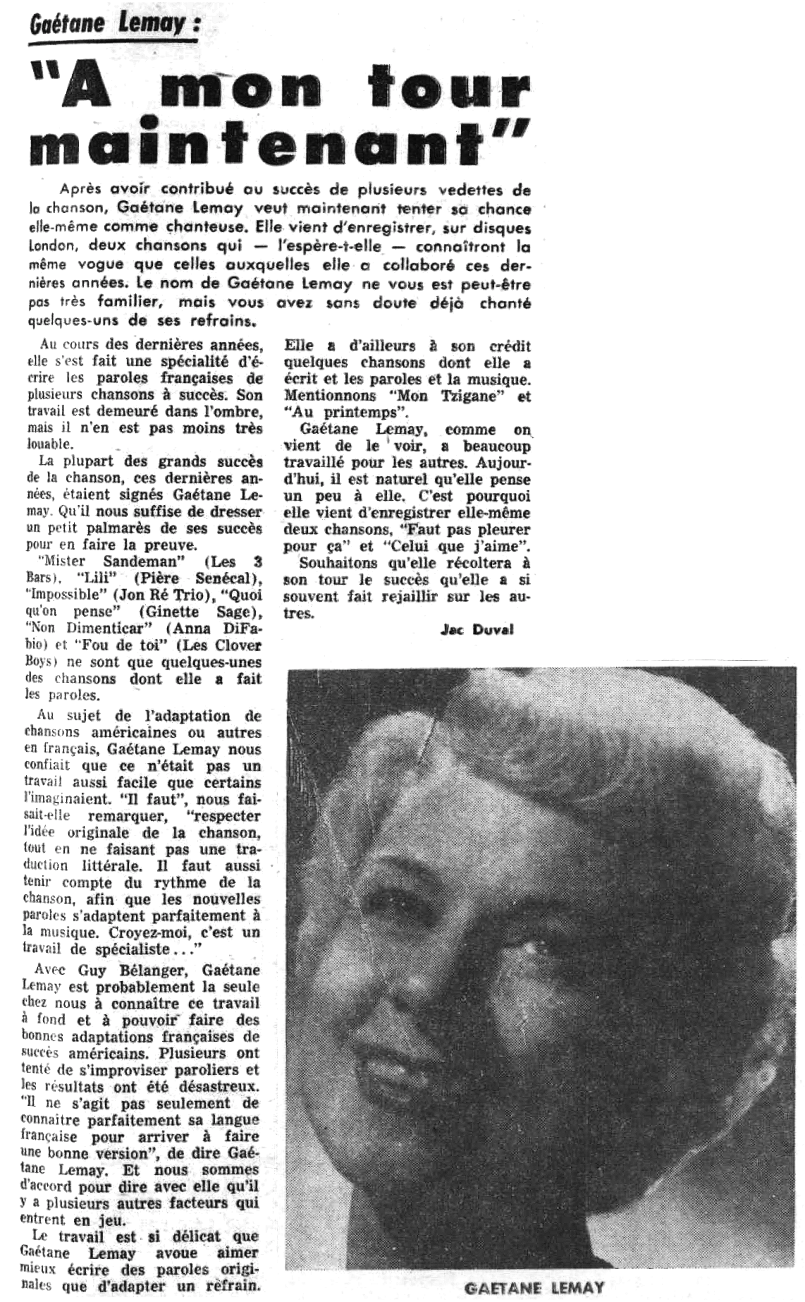 Photos en-tête et fin: Gaby 1954 BAnQ