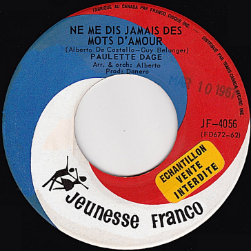 La chanteuse Paulette Dage a produit un 45 tours sorti en mars 1967