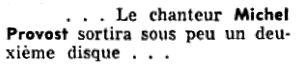 Selon le catalogue Iris de la BAnQ, Michel Provost a sorti un troisième 45 tours paru, cette fois, sur étiquette Fleur de lys avec les titres "Ne reviens jamais, adieu" et "Mon p'tit vagabond".