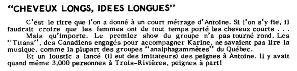 Source: La merveilleuse époque des groupes québécois des années 60, Léo Roy, Les Éditions Rétro Laser - 2003