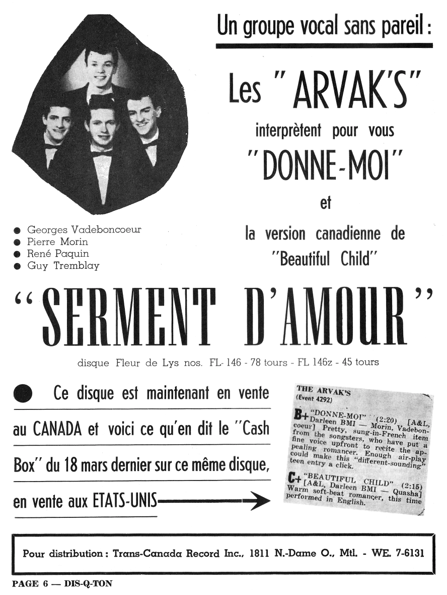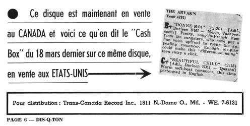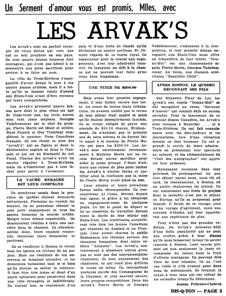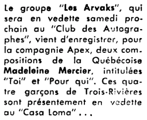Ce sont les Arvaks qui ont enregistré à Boston Beautiful Child. Ils ont également enregistré un 45 tours avec la chanteuse américaine Paula Gay
