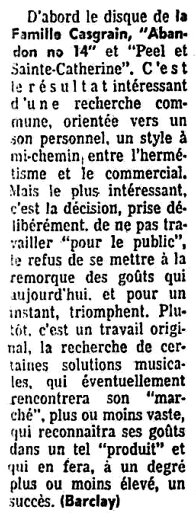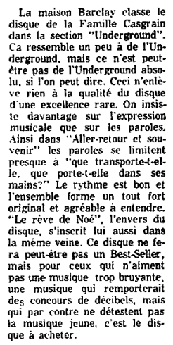 La Famille Casgrain (le nom n’a aucune signification particulière) est formé au printemps de 1969 autour du chanteur Pierre Voyer et du guitariste Jean-Guy Durocher. Viennent se joindre au début le claviériste Michel Hinton et le guitariste Michel Rivard, en plus du batteur Louis Parizeau (ex-Sinners). Ce dernier devient producteur du groupe et est remplacé par Guy Berthiaume. Peu après, Michel Rivard quitte le groupe et est remplacé par Pierre Bertrand. La Famille Casgrain enregistre á l’automne 1969 un premier 45 tours chez Barclay comprenant deux chansons de Pierre Voyer et Jean-Guy Durocher qui ont également composé les deux chansons du deuxième 45 tours paru en juillet 1970. Voyer et Durocher quittent le groupe. Hinton, Bertrand et Berthiaume continuent pendant un court laps de temps.