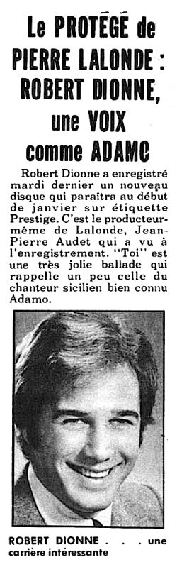 Robert Dionne est le petit-fils du fondateur de la chaine de marchés d’alimentation Dionne très populaire dans les années 1950 et 60. Robert Dionne commence à composer des chansons alors qu’il poursuit des études en Commerce à l’université de Montréal.