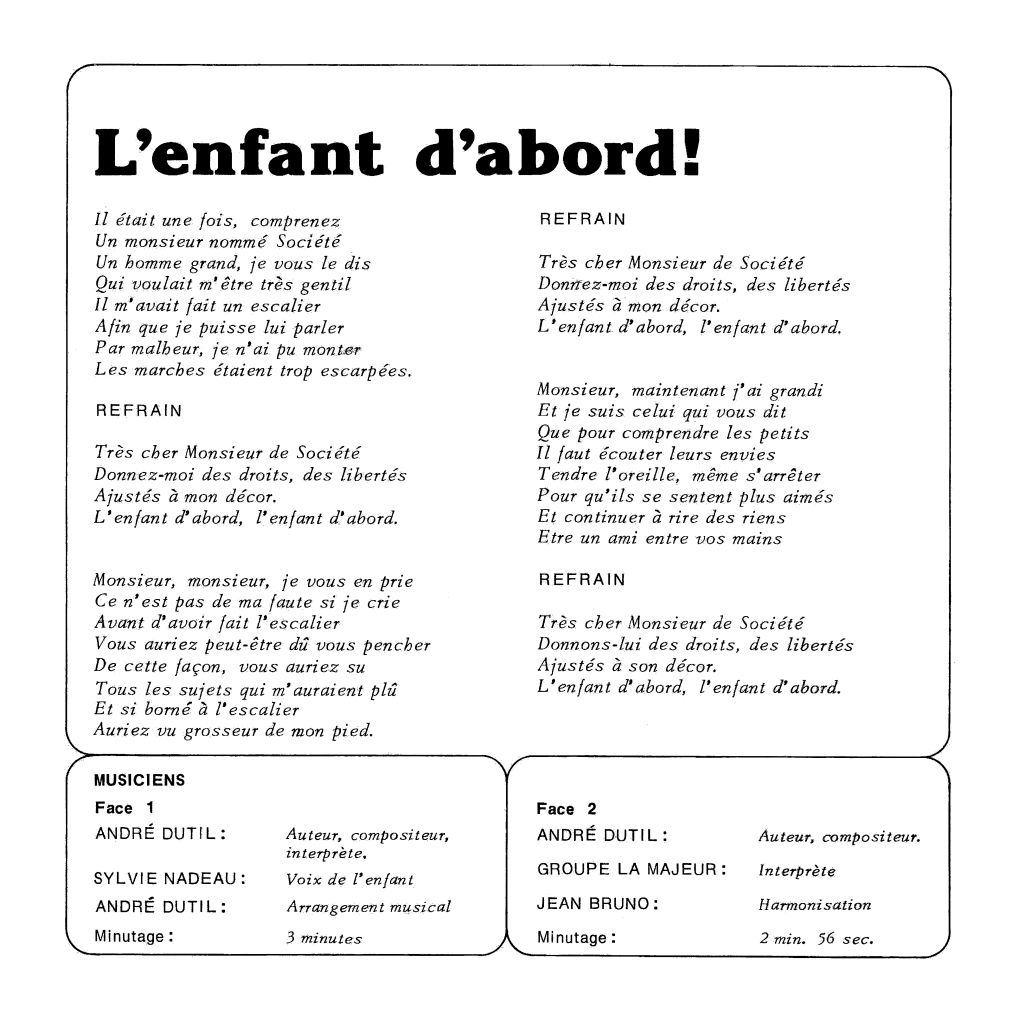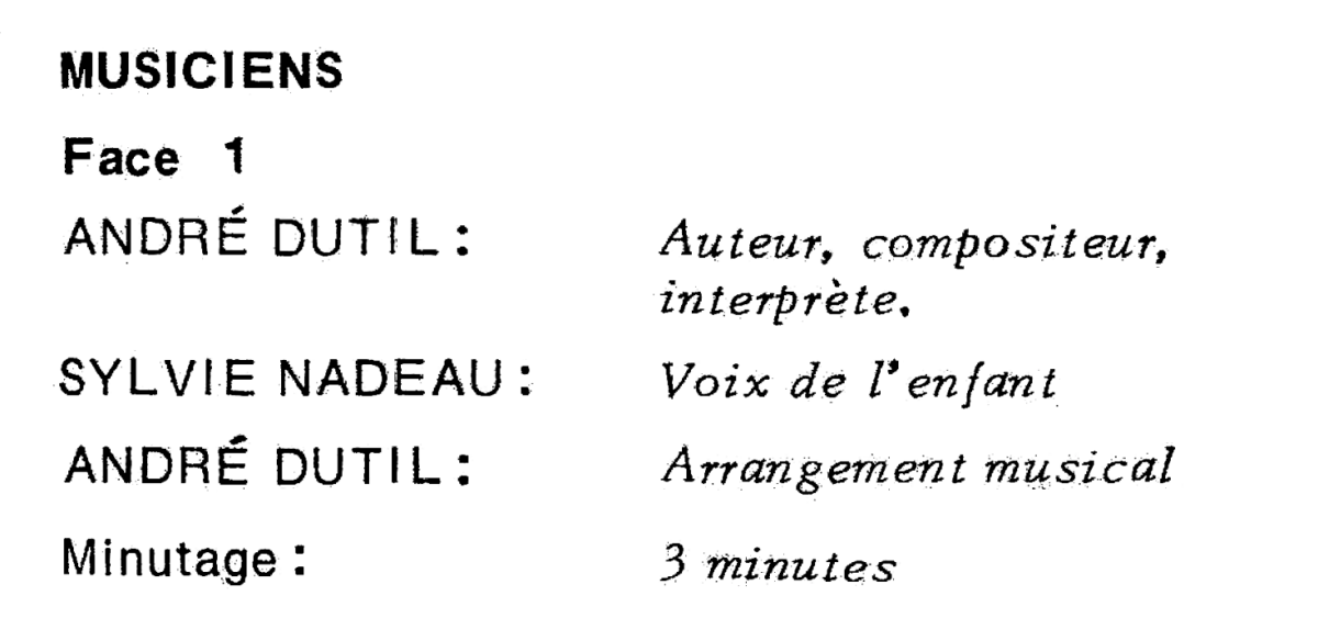 Captation de la chanson "Douceurs" enregistrée en public et interprétée par son auteur, André Dutil (contexte inconnu).
