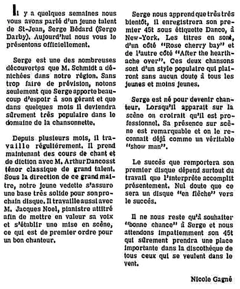 S. Aubé poursuit: ''Pour votre info., j'ai trouvé ce disque par pure coïncidence dans un magasin Woolco et c'est là que j'ai appris mon nouveau nom de ....vedette !!!!