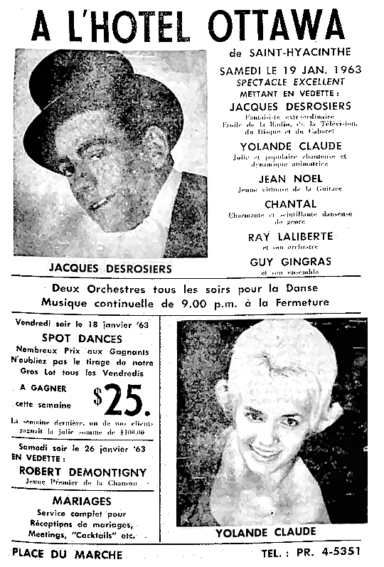 Professionnelle des cabarets, Yolande Claude s'est produite dans bon nombre d'établissements comme chanteuse et maitresse de cérémonie.