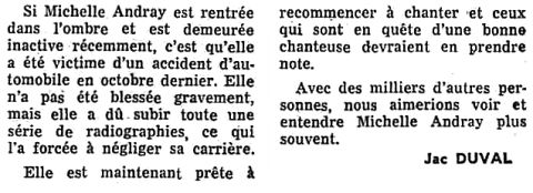 Michèle Andray est décédée en 2008 à l'âge de 73 ans.