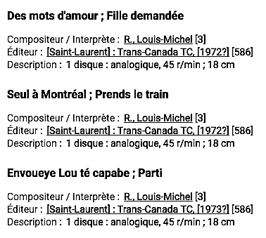 Au début des années soixante-dix, un nouveau chanteur auteur-compositeur amorce sa carrière sous le nom d'artiste de Louis-Michel R.. Il a réalisé trois 45 tours avec Trans-Canada au cours de 1972 et 1973. Apparemment, il ne semble pas avoir reçu une grande attention médiatique. Vers 1977, il se manifeste à nouveau avec un simple et un long-jeu (toujours avec ses propres chansons) sous un nom modifié, Louis Michelair, et sur une nouvelle étiquette, Franco FD - Solo.
