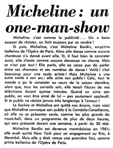 Après une semi-retraite dans les années 1970, la chanteuse ouvre une boîte à chansons à Lachine en février 1977. Après son mariage à Sherman Levin, elle s’établit à Minocqua au Wisconsin où il dirige le Micheline Bardin-Levin Espirit d’Excellence Dance Studio. Elle est décédée à l’âge de 93 ans le 16 février 2014