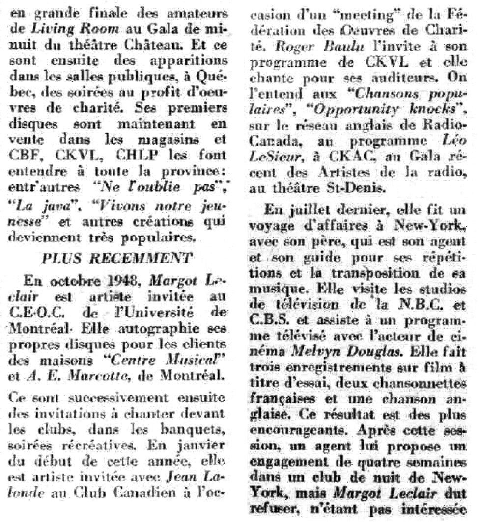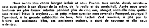 (La discographie de Margot Leclair se limite à deux 78 tours - Robert Thérien)
