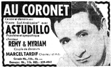 Peu d'infos pertinentes à son sujet. La première trace de sa présence chez nous remonte à 1959. Au début des années soixante à Québec, Gérard Thibault monte la revue "Fiesta sud-américaine". Astudillo, accompagné d'un couple de danseurs, en est la vedette.
