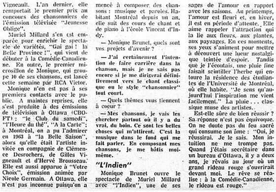 Monique Brunet, RCA Victor Canada International, PC/PCS-1107, 1966 -verso
